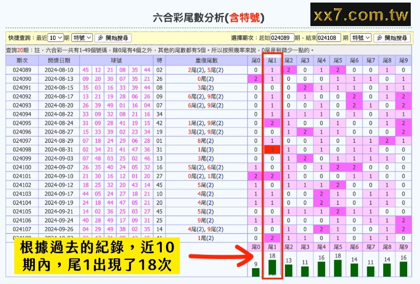 雖然統計學上認為每個號碼的出現機率相同,但實際上,有幾個號碼往往會特別熱門。例如,根據六合彩的開獎紀錄,最近10期內,尾1出現了18次!因此,許多玩家會在明牌時追逐這個尾號,並至少投注3期,以提高中獎的機會!